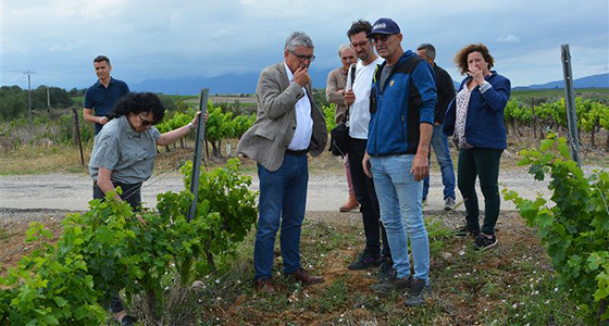 Le président de la CCMSA Pascal Cormery est venu observer l'ampleur de la crise de la sécheresse dans les Pyrénées-Orientales, durant deux jours de rencontres et de visites d'exploitations les 13 et 14 juin 2023. L'objectif est de débloquer rapidement des aides pour les adhérents.